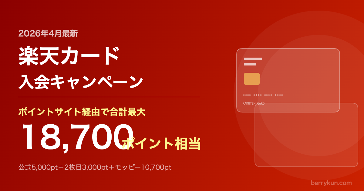 楽天カードの入会キャンペーンでは、申し込み方法を少し工夫するだけで受け取れるポイントが3倍近くになります。公式サイトから直接申し込んだ場合の最大8,000ポイントに対し、ポイントサイトを経由すれば合計15,000〜18,000ポイント相当を狙えます。この記事では2026年4月の最新キャンペーン情報をもとに、ポイントを最大化する手順と注意点を徹底解説します。